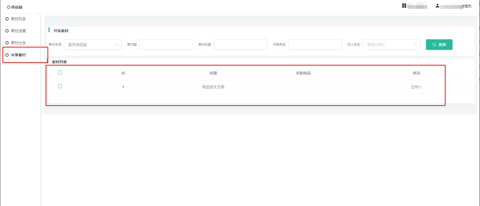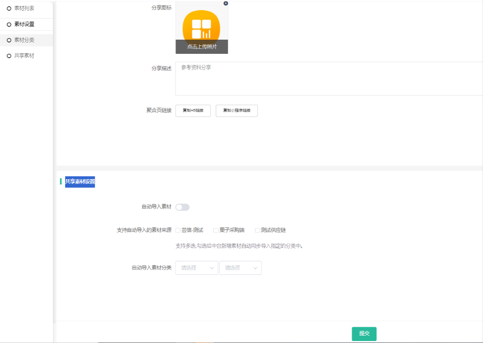 2、商城素材中心插件可以同步中台素材,同步的同时导入素材分发关联的商品。