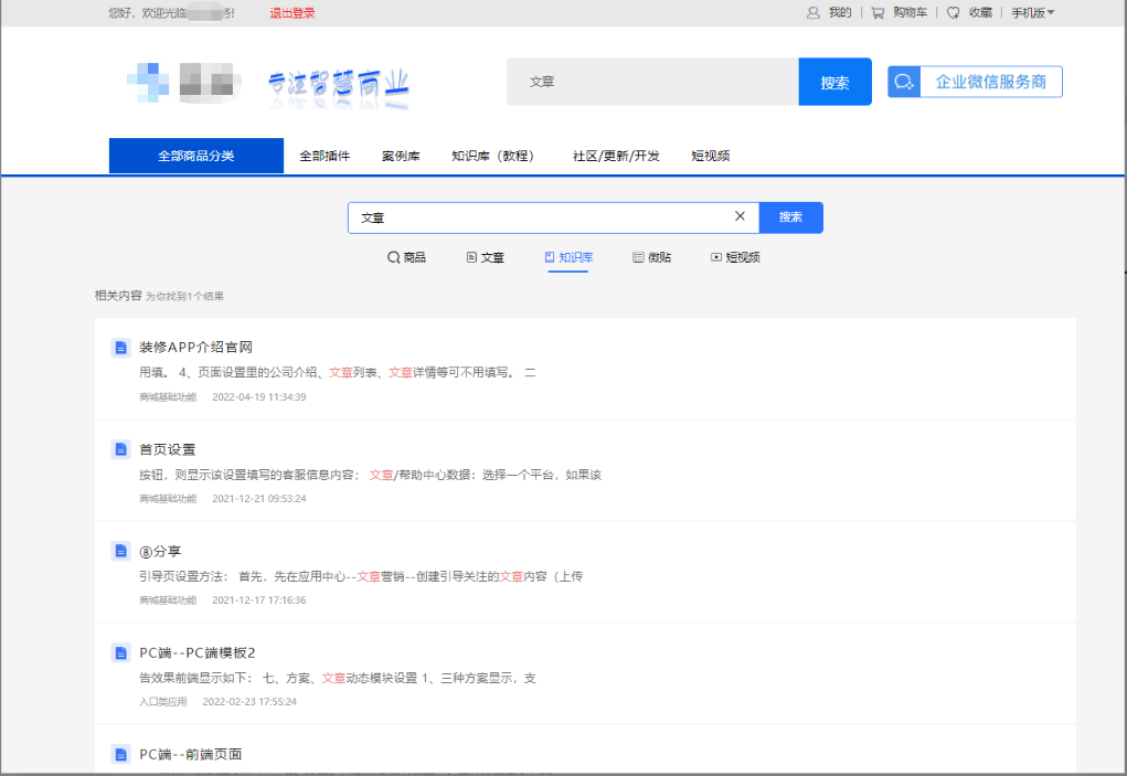 2、关闭原模块搜索:当前仅支持知识库和微社区,勾选后,原模块中的独立搜索框将不再显示。