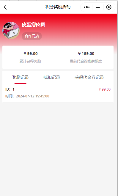 2,进入可查看到累计获得奖励和当前代金券剩余额度