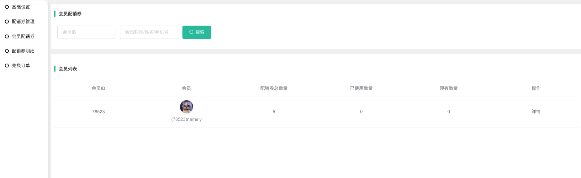 2、点击详情跳转查看会员配销券的详情