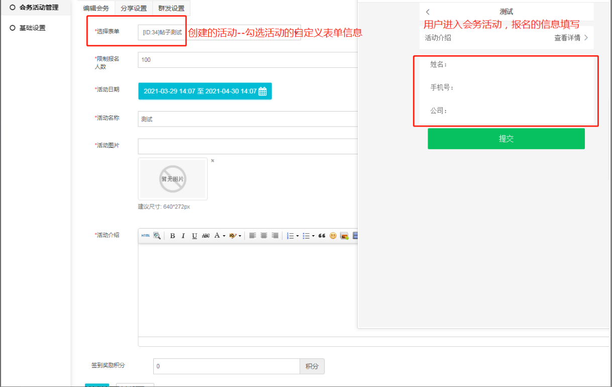 一、会务活动添加自定义表单