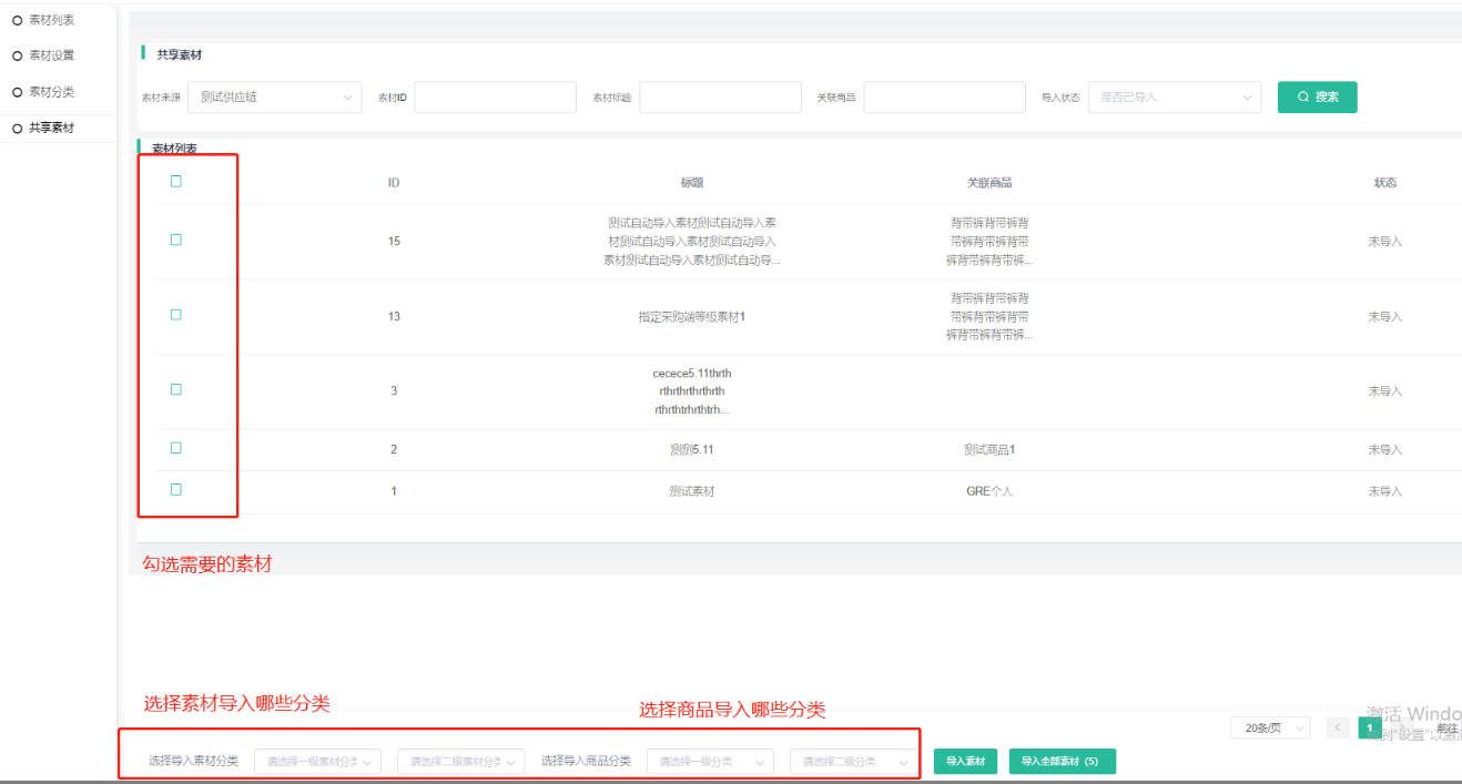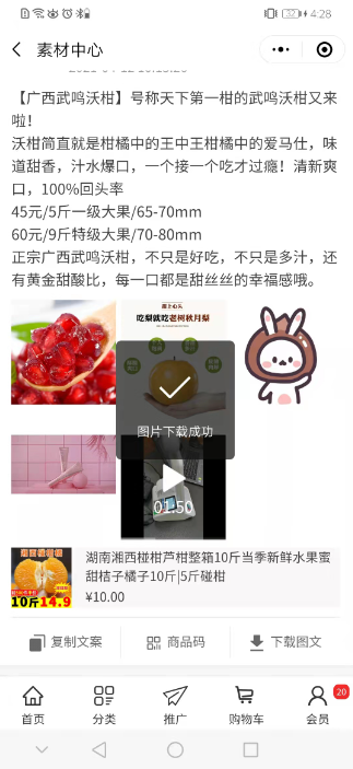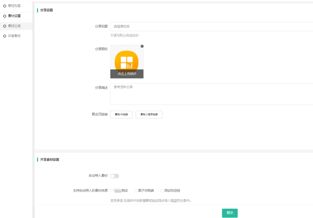 2、商城素材中心插件可以同步中台素材,同步的同时导入素材分发关联的商品。