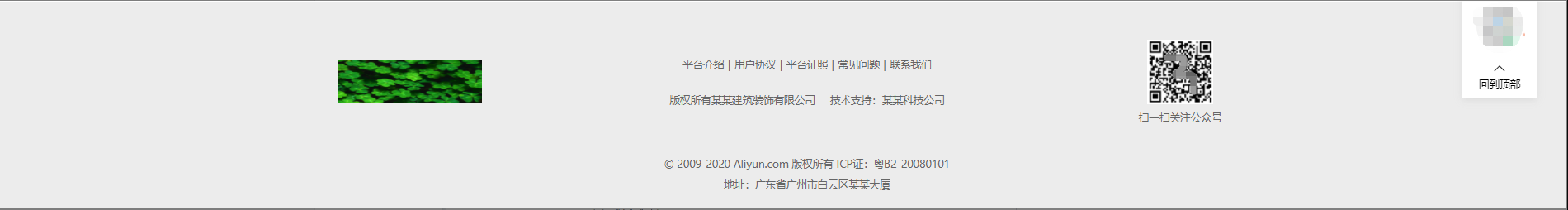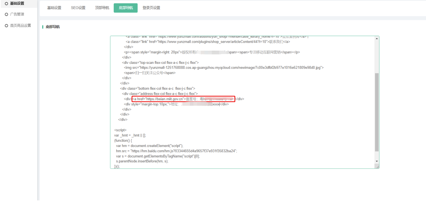 可自定义设置底部导航logo、二维码、导航链接、备案号、公司信息等;