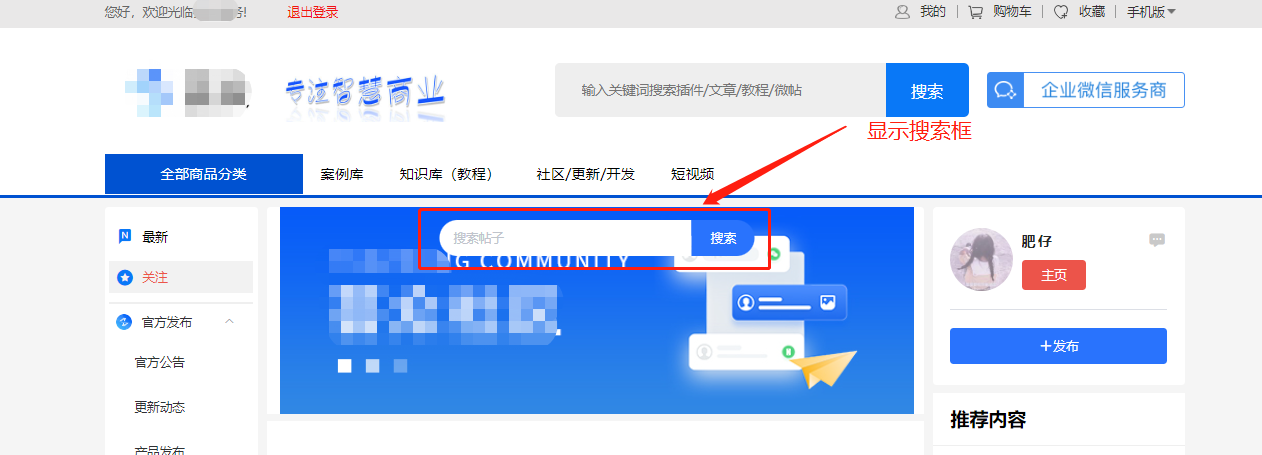 2、关闭原模块搜索:当前仅支持知识库和微社区,勾选后,原模块中的独立搜索框将不再显示。