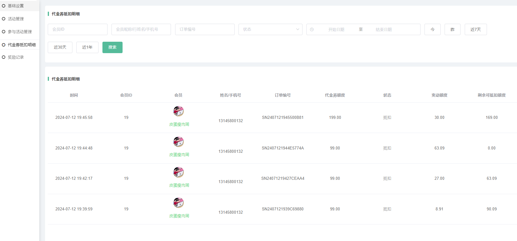四、代金券抵扣明细