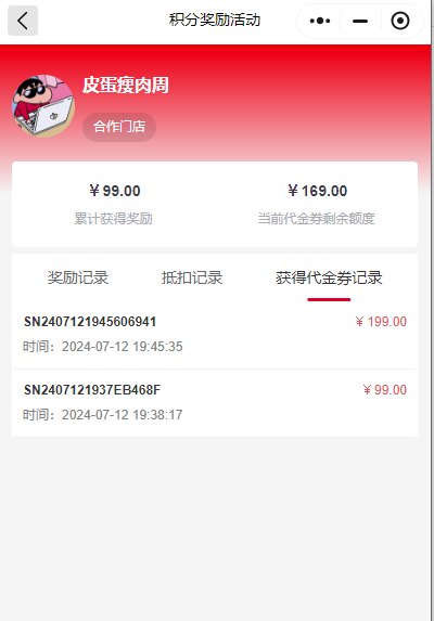 九、代金券抵扣比例和奖励周期都是获得代金券时确定,后续更改设置只影响新获得的代金券