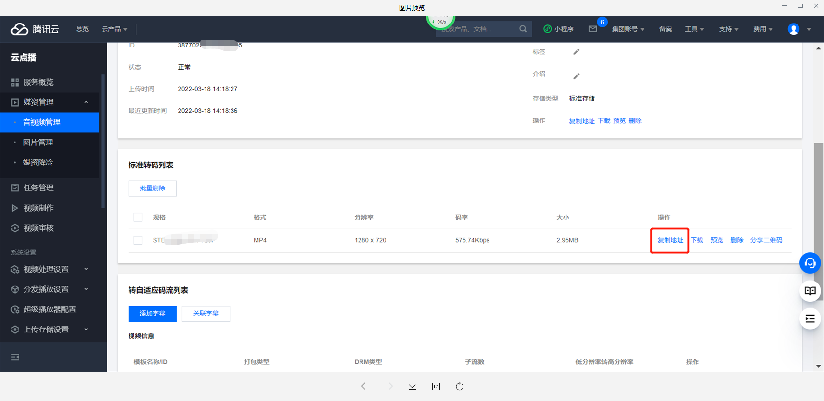 3. 提前注意:在使用腾讯云点播时,一定要使用转码后的视频的地址,不要使用原始的视频地址,因为原始的视频可能导致如下问题: